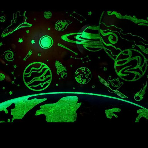 Это не просто пазл, а волшебная игра-головоломка! Достаточно выключить свет в комнате, и вы увидите, как собранная картинка благодаря особой краске начнёт светиться в темноте.