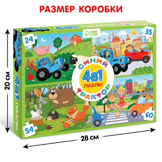Купить Набор пазлов 4 в 1 Синий трактор 24-35-54-60 эл в Новосибирске Вы можете в магазине развивающих и настольных игр "Игры Почемучек".