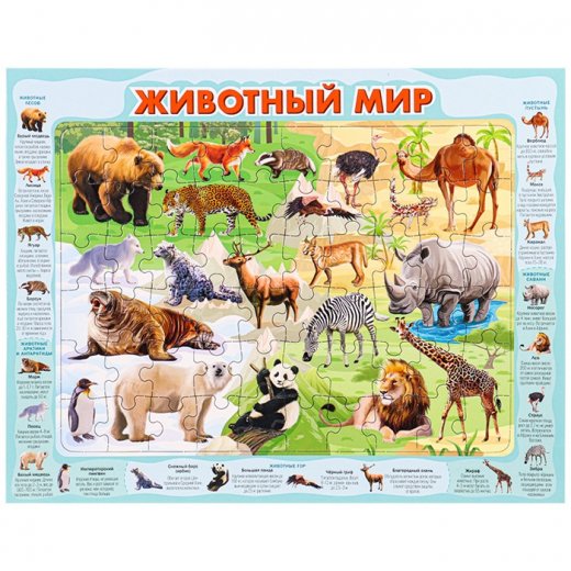 Купить Пазл-рамка Животный мир 60 дет в Новосибирске Вы можете в магазине развивающих и настольных игр "Игры Почемучек".