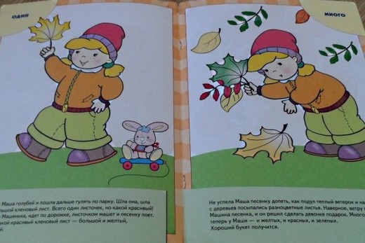 Гуляя по нарисованному парку "Школы семи гномов" вместе с милой девочкой Машей, малыш встретит много интересного - и голубей, и настоящего клоуна, соберет красивые осенние листья и поймет важные для него вещи. Например, что кормить крошками птиц - очень приятно, а дарить подарки также радостно, как и получать их. Он узнает новые слова и поработает над развитием речи. А между делом, незаметно для себя, усвоит новые для себя понятия "один", "много", "ни одного».