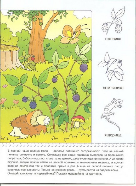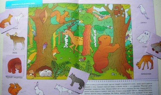 С помощью этой книжки ребенок так же расширит свое представление об окружающем мире. Побывав в лесной чаще, на лесной полянке, на опушке леса, на лугу, на пруду, у водоема и разложив соответствующие карточки к картинам-панорамам, малыш познакомится с многочисленными обитателями. Мир растений, насекомых, птиц и зверей раскроет перед малышом свою красоту. А новые знания станут связующей ниточкой с живой природой. Они помогут малышу стать внимательным и наблюдательным. А еще он научится исследовать мир и рассказывать об увиденном.