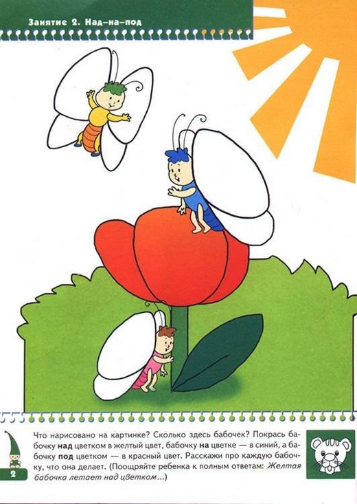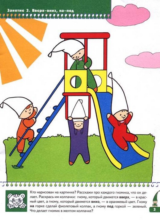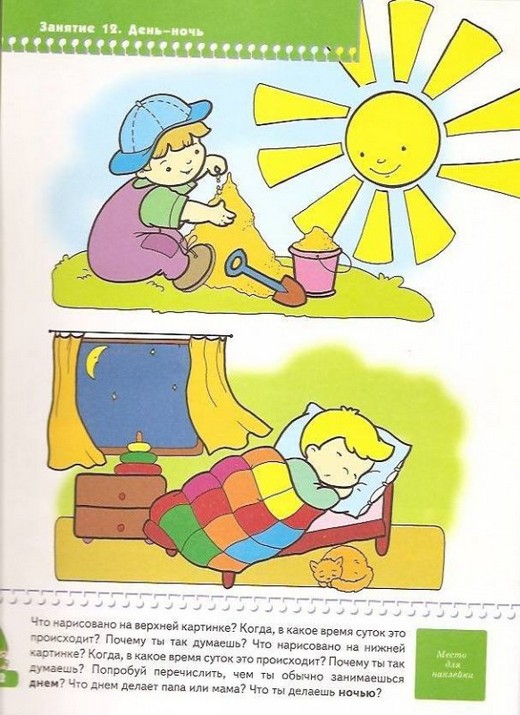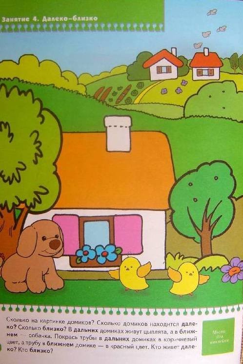 Ориентировка в пространстве и времени у большинства детей вызывает затруднения. Эта книга как раз содержит понятия о времени и положении предметов в пространстве: вверху, внизу, посередине; над – на - под; вверх - вниз, на - под; далеко – близко; внутри – снаружи, внутри - снаружи, перед – за; справа, слева, между; ориентировка на листе; день-ночь; утро - вечер; времена года; быстро – медленно. На каждой странице имеется текст с вопросами, которые можно задать ребенку по картинке. Кроме того, в книжку вложены наклейки, которые помогают поощрить и заинтересовать ребенка. Так же даны описания нескольких игр, направленных на закрепление изучаемых понятий в пособии.