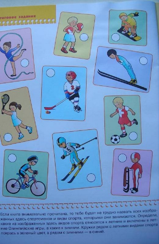 Данное пособие посвящено очень важной теме - здоровый образ жизни и занятия спортом. В книге рассказывается об Олимпийских играх, спортсменах и спортивных состязаниях. Ребенок узнает о легкой атлетике, летних, зимних и водных видах спорта. В конце книги есть итоговое задание на определение того, кто из участников каким видом спорта занимается.