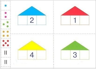 Красочная и увлекательная игра «Математические домики» поможет научить ребенка считать до пяти, познакомит его с понятиями «состав числа», «соседнее число». К игре прилагается брошюра с инструкциями для родителей. Детали игры не требуется вырезать – нужно лишь слегка надавить на карточку, чтобы получить готовую картинку. Закруглённые края деталей удобны и безопасны. Состав игры: карта с изображениями домиков разной высоты, цветные полоски, изображения матрёшек, четыре одноэтажных домика, карточки с точками, цифрами и знаками.