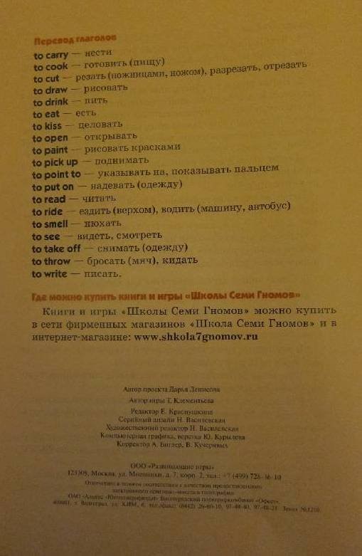 Купить Школу семи гномов Английские глаголы в Новосибирске Вы можете в магазине развивающих и настольных игр "Игры Почемучек"