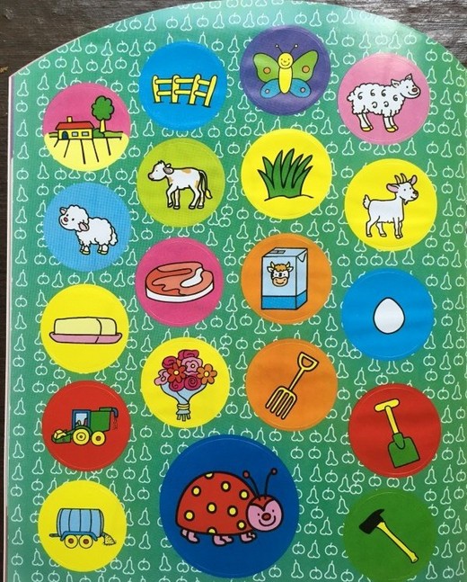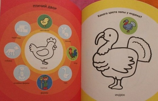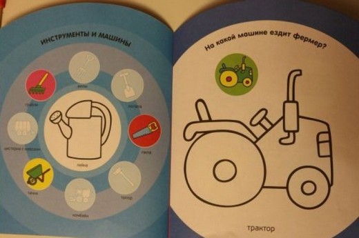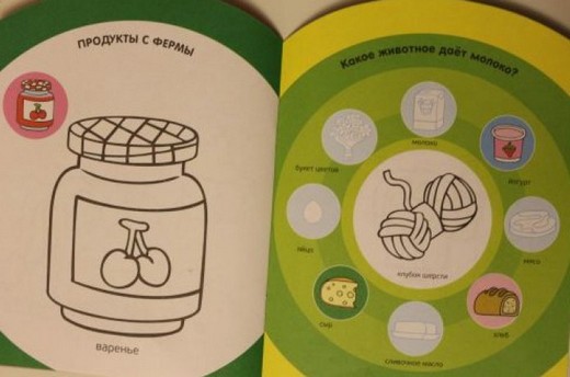 Какие животные живут на фермах? Сколько колес у трактора? Из чего делают сыр? А кого боятся птицы? Скорей открывай эту книжку - и ты все узнаешь! Раскрашивай картинки, приклеивай наклейки, запоминай названия животных, предметов, машин и учись считать до пяти! Детям до 3-х лет.