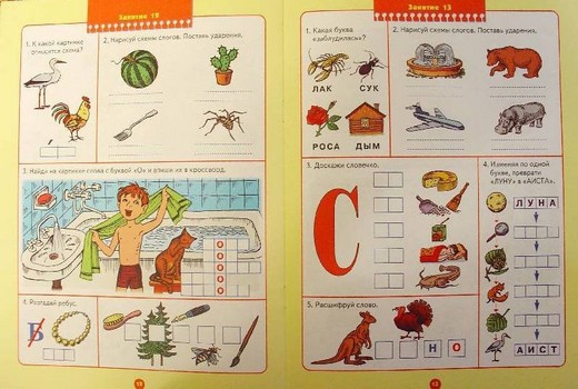 Эта книга рассчитана на детей, знающих буквы и умеющих их писать. Занятия составлены в игровой форме, много загадок, ребусов, кроссвордов, головоломок, заданий на работу со звуками (нахождение первого, серединного и последнего звука, узнавание гласных и согласных, твердых и мягких звуков и т.д.) и буквами (обведение определенных букв в кружок, добавление букв к словам, перестановка букв, цепочка слов и т.д.). С помощью этого пособия ребенок приобретет первичные навыки чтения. В приложении к книге малыш найдет интересные наклейки.