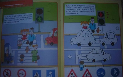 Эта книга даст ребенку первые познания о светофоре и дорожных знаках.
