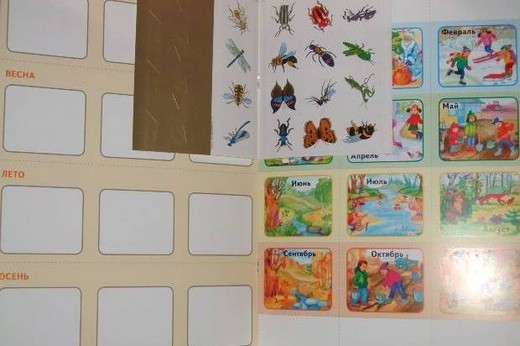 В книгу вложены наклейки, а также дидактические картонные карточки, которые помогут ребенку запомнить 12 месяцев и их последовательность.