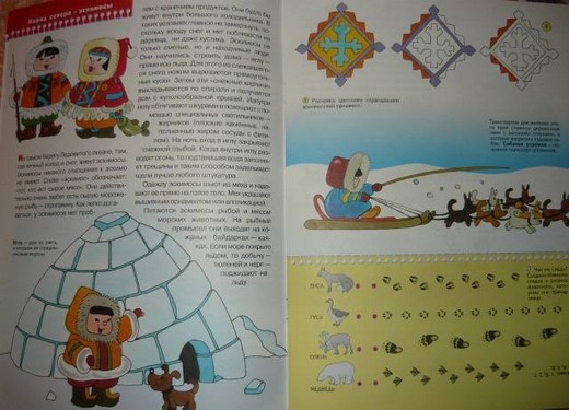 Каждый разворот книги посвящен одной народности, представлен небольшой рассказ, яркие иллюстрации и задания: кроссворды, загадки, раскраски и т.д.
