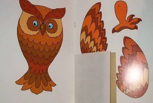 Также книга содержит картонную вкладку - подвижную картонную игрушку "Сову", и цветные наклейки.