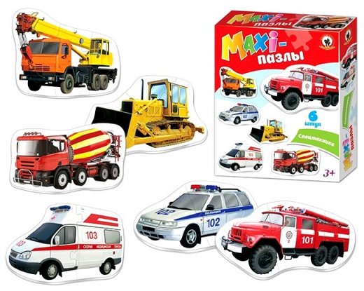 Макси-пазлы созданы специально для маленьких детей, детали пазлов крупные, картинки яркие и натуралистичные. В наборе 6 пазлов, имеющие разное количество элементов: 2, 3, 4. Собирая пазлы, дети познакомятся с видами специальной техники и городского транспорта, узнают номера специальных служб. Сборка красочного пазла – это прекрасный способ для семейного досуга. Он позволит увлекательно и с пользой провести время, снять накопившийся стресс. Пазл представляет собой картинку, состоящую из некрупных деталей разной формы, соединяющихся замком, который делает конструкцию прочной.
