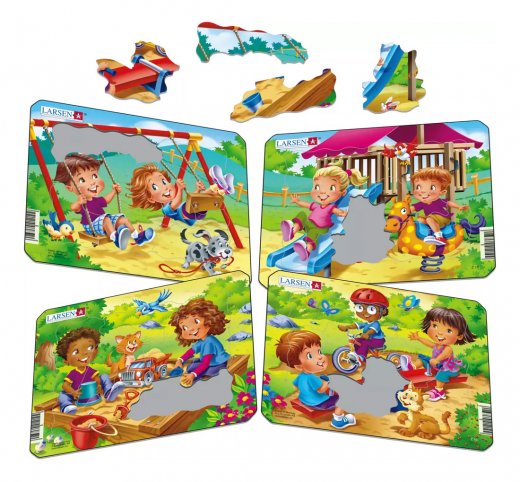 Пазл Детская игровая площадка представлен в ассортименте. Вы можете приобрести все картинки или выбрать 1 из четырех представленных пазлов. В наборе: 7 элементов пазла. Размер собранного поля - 18,3 x 14,3 см