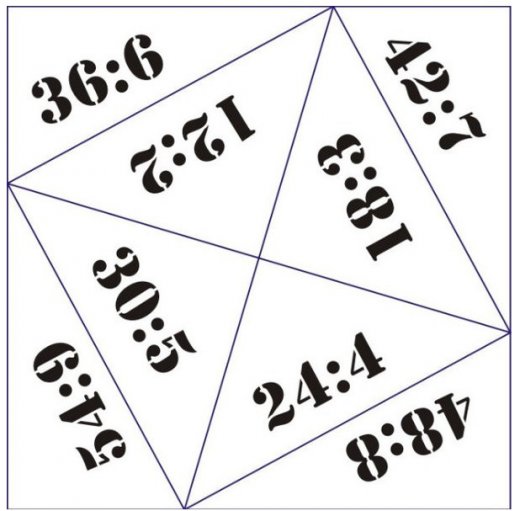 - 14 полей лото размером 16х14 см. На одной ее стороне 6 чисел с результатами умножения, на другой - крупная цифра в рамке (результат деления)