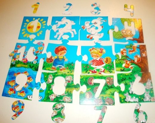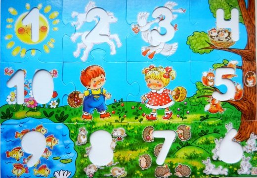 На столе выкладывают все цифры и определяют первенство хода. Первый игрок находит число 1 и выкладывает его на середину. Второй игрок должен найти цифру 2 и положить ее рядом с первой цифрой и т.д. Последним в ряду будет число 10. При этом игроки считают вслух по порядку.