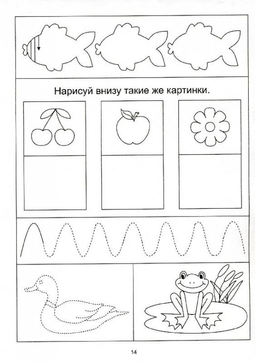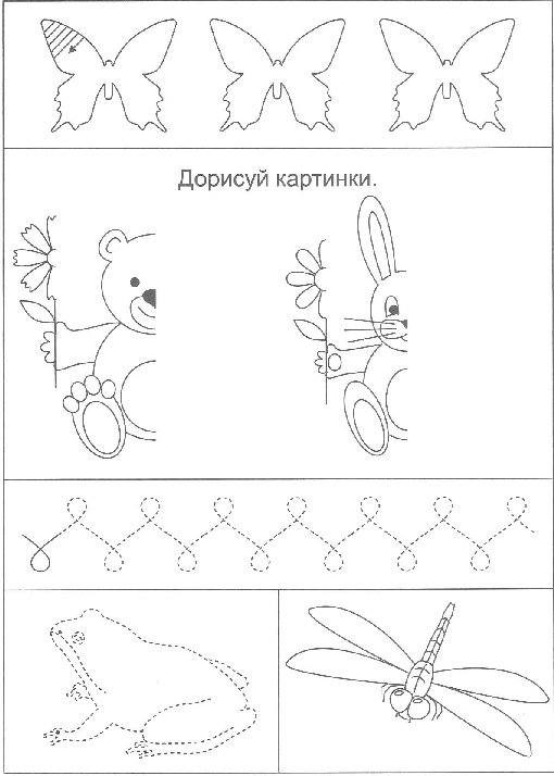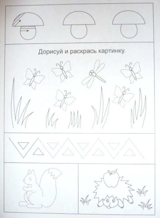 Задания в папке повторяются: выполни штриховку по образцу; продолжи рисовать узор; обведи рисунок по точкам и раскрась картинку. Картинки в цветном вкладыше необходимо вырезать по контуру. У вас получатся трафареты, которые можно обвести, приложив на листок, а затем получившиеся контуры заштриховать или раскрасить.