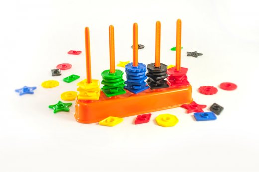 Сортировка элементов по цвету или форме и нанизывание их на основу способствует развитию зрительно-моторной координации, внимательности, усидчивости а также навыков логического мышления.