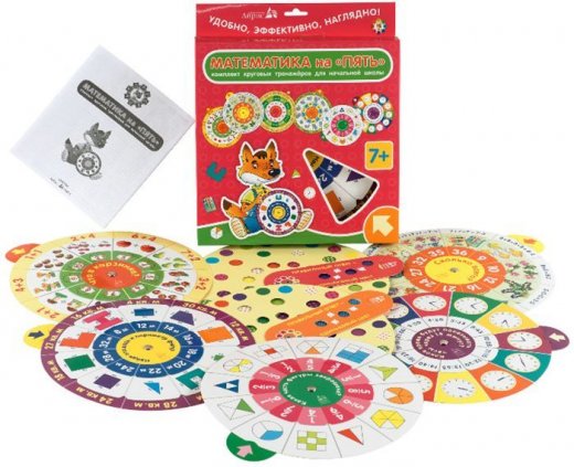 Купить комплект круговых тренажеров "Математика на "пять" 7+" в Новосибирске Вы можете в магазине развивающих и настольных игр "Игры Почемучек".
