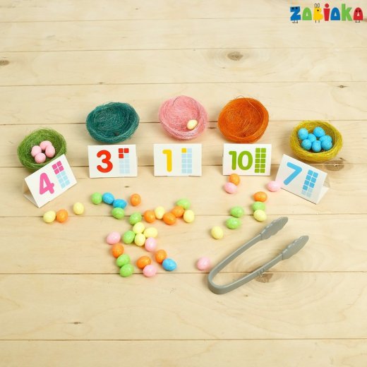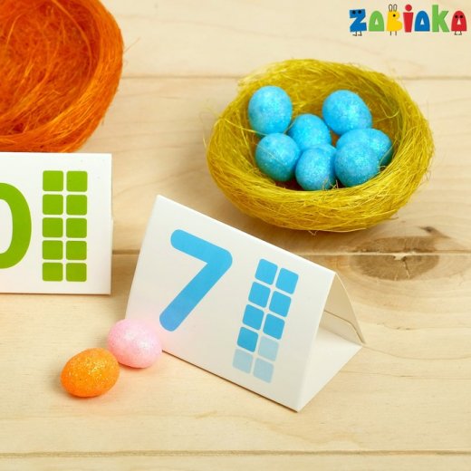 2. Поставьте карточки с цифрами рядом с каждым гнездышком.