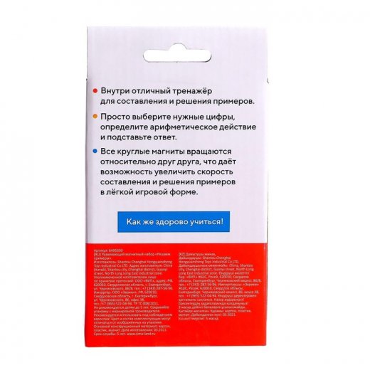 Все круглые магниты вращаются относительно друг друга, что даёт возможность увеличить скорость составления и решения примеров в лёгкой игровой форме.