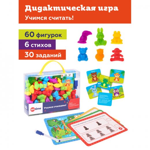 Купить Развивающую игру On time Учимся считать Животные 60 шт в Новосибирске Вы можете в магазине развивающих и настольных игр "Игры Почемучек".