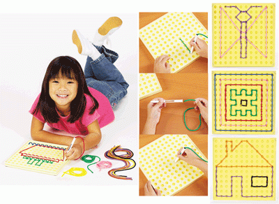 Развить зрительно-моторную координацию, мелкую моторику, глазомер и тактильные ощущения маленьким непоседам позволит необычное игровое пособие "Ровные строчки", разработанное коллективом компании Learning Resources, удостоенной множеством престижных наград и премий за высочайшее качество, безупречный дизайн и образовательную эффективность развивающих игрушек для детей. Используя составляющие набора "Ровные строчки" ребята не только научатся выполнять аккуратные строчки, но и потренируются в исполнении различных видов стежков и смогут "вышить" различные картины.