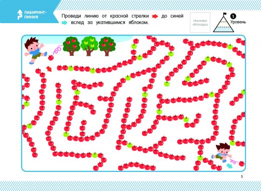 В книгу "Лабиринты и логика 5 лет" включены различные виды лабиринтов, которые призваны приучить ребенка к умственной деятельности через интересные задания, выполняя которые он задействует и пальчики, и голову. Когда малыш смотрит на тупиковые дорожки и думает, куда нужно пойти на развилке, у него развивается кратковременная память, без которой мозг не может нормально функционировать. В книгу для детей пяти лет включены также сложные "трёхмерные" лабиринты, прохождение которых развивает пространственное мышление.