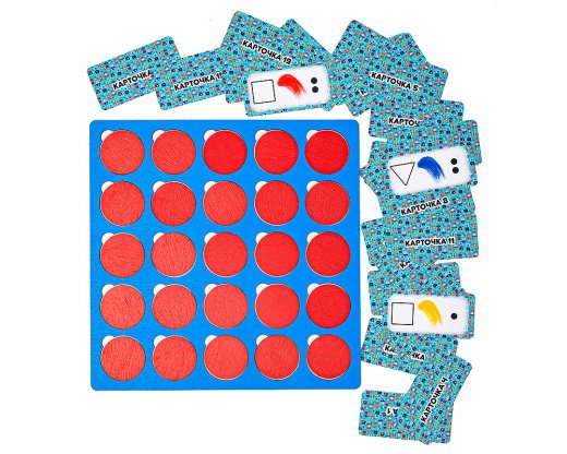 Вариант для 2-х игроков: кто быстрее найдет робота по указанным на карточке признакам? (Предварительно игрок выбирает фишки одного цвета (синие или красные), которыми он будет закрывать роботов. Это позволит быстро подсчитать победные очки каждого игрока после завершения игры).