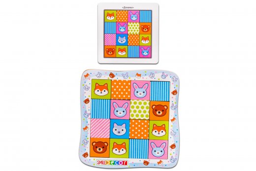 4. Игра «Пятнашки». Выберите одну из карточек «Пятнашки» и попросите ребенка посчитать количество фишек с изображением каждого животного на карточке. Разместите на игровом поле соответствующее количество фишек с изображением животных в хаотичном порядке. Предложите ребенку переместить все фишки по образцу на карточке, передвигая их по игровому полю по одной.