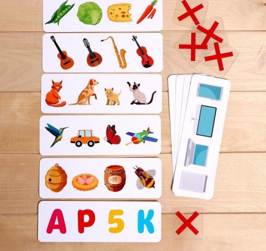 Набор поможет в игровой форме научить ребёнка рассуждать логически. Ему предстоит определить, по какому признаку объединены предметы, и найти лишний.