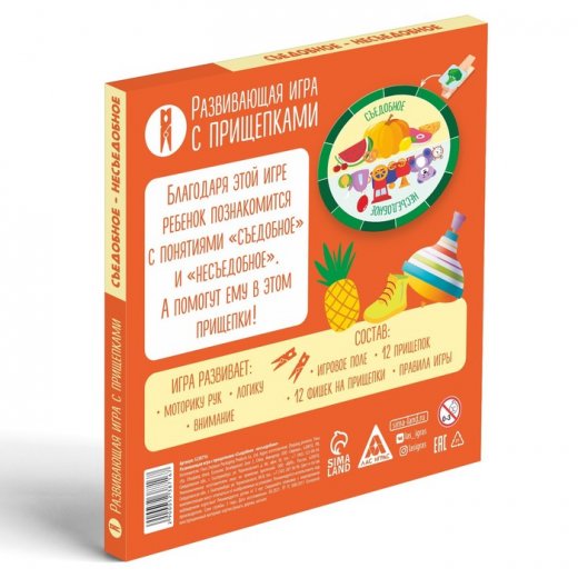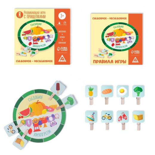 Купить Развивающую игру Съедобное несъедобное с прищепками в Новосибирске Вы можете в магазине настольных и развивающих игр "Игры Почемучек"