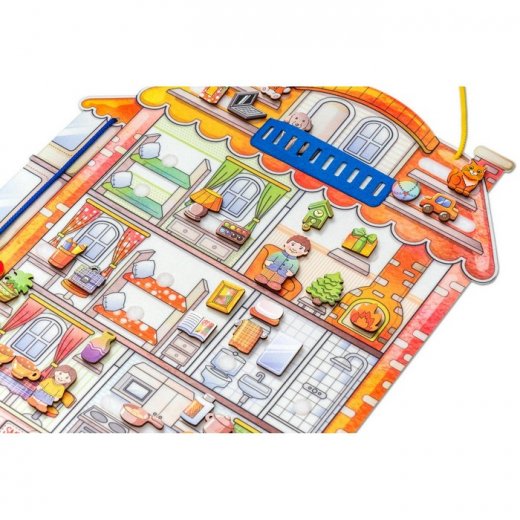1. Игра «Новоселье». Расскажите, что семья хочет заселиться в новый дом, рассмотрите коврик вместе с ребенком. Спросите, сколько этажей в доме? Попросите найти и показать кухню, столовую, спальню, гостиную, ванную комнату, балкон. Обсудите, что такое семья. Вместе с ребенком придумайте имена для всех членов семьи и их питомцев.