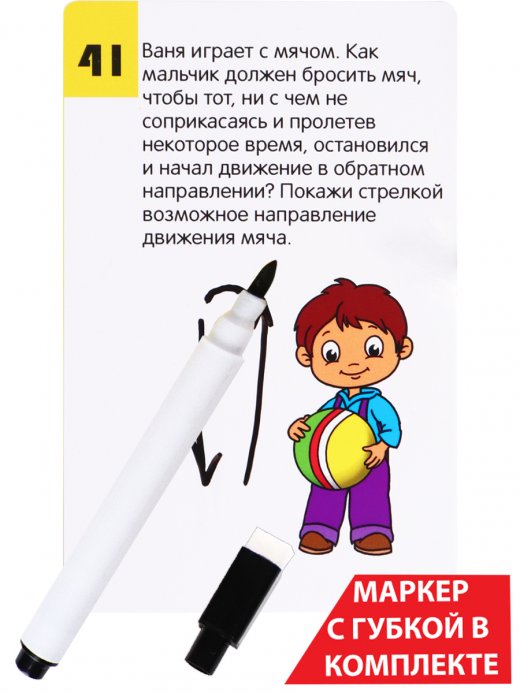 Карточки с маркером Пиши-Рисуй-Стирай "ИГРЫ ГОЛОВОЛОМКИ" — отличный набор из 80 логических игр для развития малыша. В комплект входит маркер с губкой на колпачке для вытыирания маркера и 40 карточек. При желании можно использовать любые водные фломастеры. На карточках представлены увлекательные задания, которые помогут ребенку развить мелкую моторику рук, внимание, зрение, цветовое восприятие, память и мышление. Компактный размер позволит брать набор в дорогу