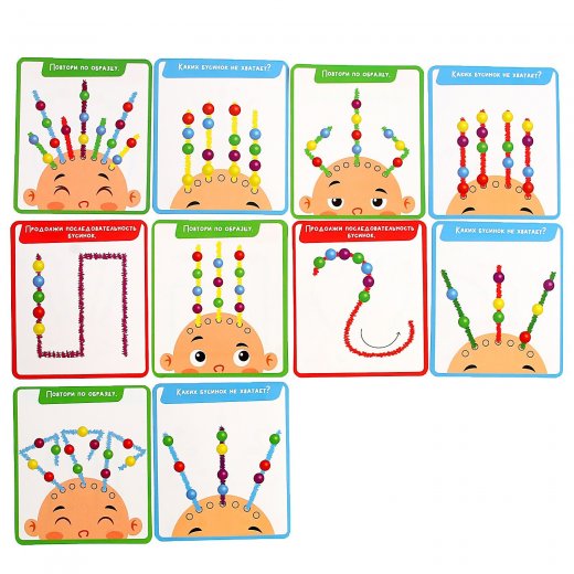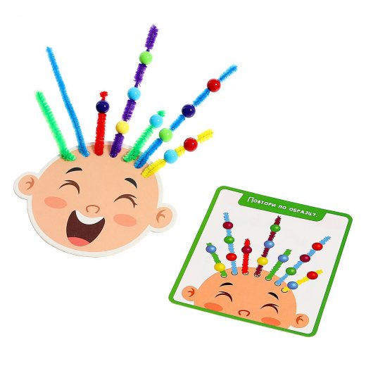Учимся играя! Прикрепляйте пушистую проволоку к забавным мордашкам и украшайте её бусинками, выполняя задания с карточек. С развивающим набором «Весёлые мордашки» ребёнок потренирует мелкую моторику, логическое мышление и внимательность.