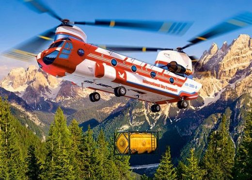 Пазлы Вертолет – придется по душе любителям собирать головоломки из большого количества элементов. Из деталей этого пазла получится грузовой вертолет в момент перевозки груза в горной местности. Пазлы выполнены из высокопрочных и износостойких материалов, обеспечивающих многократность сборки и стойкость окрашивания поверхности без последующего выгорания и выцветания. У деталей сглаженные края и они легко соединяются между собой.