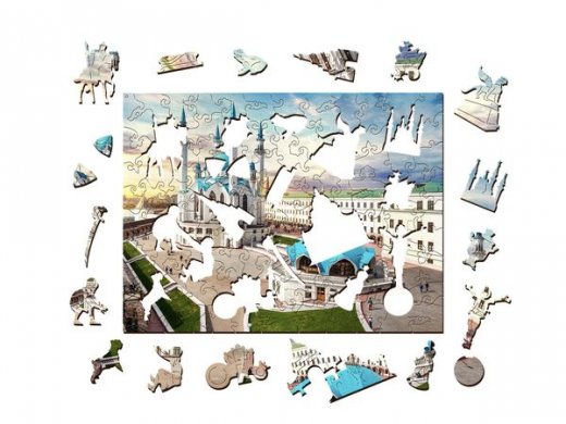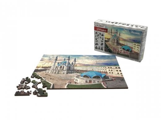 Фигурные пазлы Citypuzzles - это пазлы с деталями причудливой формы. При этом часть элементов выполнены в форме предметов, относящихся к теме основной картинки. В данном случае, это предметы и памятники, ассоциирующиеся с Казанью. Часть таких элементов целые, часть складывается из нескольких деталей. Детали пазла выполнены из фанеры. Изображение с помощью специального принтера нанесено прямо на дерево (самый прочный вариант). Такие необычные пазлы понравятся и детям и взрослым. Даже те, кто не любят собирать классические пазлы, будут с интересом рассматривать и стыковать фигурные детали.