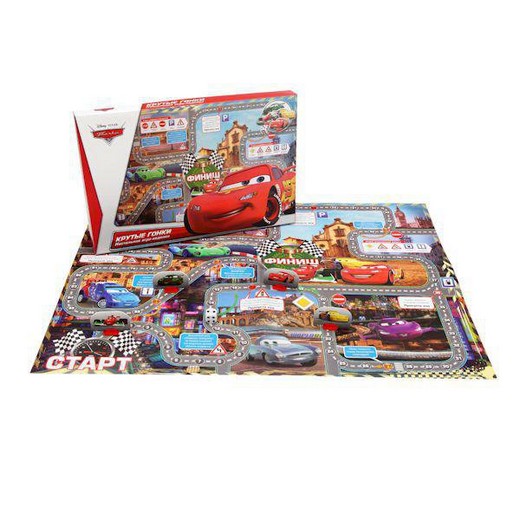 Настольная игра "Тачки Улетные гонки" создана по мотивам одноименного мультфильма "Тачки". Игроки берут роли или отчаянной машинки Маккуина или азартного Франческо. Это будет супергонка с Вами в главных ролях! Принимайте участие в событии этого тысячелетия и сделайте все для желанной победы! Пересеките финиш, примите овации, получите суперкубок! Но помните, где-то рядом всегда едет умелый и уважаемый противник!