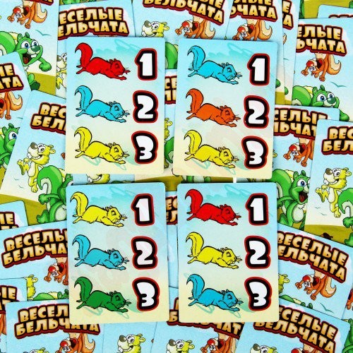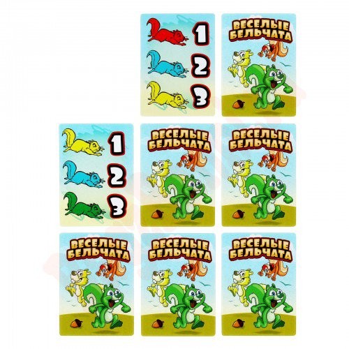 В начале игры участники получают по одной карте, на которой изображено три бельчонка разного цвета, а также указан порядок, в котором они должны дойти до финиша. А удастся ли им добраться до своих домиков в нужном порядке, зависит от вашей тактики, логики и смекалки! Будьте внимательны, ведь каждый игрок будет перемещать бельчат так, как выгодно ему.