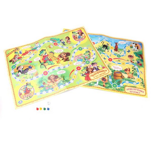Купить Настольную игру Ходилка Приключение котенка и Чебурашка и его друзья 2 в 1в Новосибирске, Вы можете в магазине настольных и развивающих игр "Игры Почемучек"
