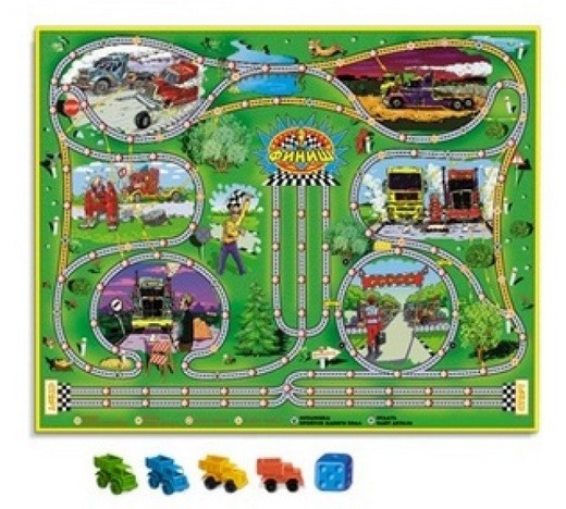 Настольная игра-ходилка Крутые гонки -идеальная игра-ходилка для мальчиков! Вместо фишек – маленькие машинки, которые еще и нужно собирать в процессе игры. Игровое поле со сложной трассой, где можно заехать в гараж и починить машину, собрать бонусы, спасающие от неприятностей на дороге, объехать аварию или выбрать кратчайший путь к финишу!
