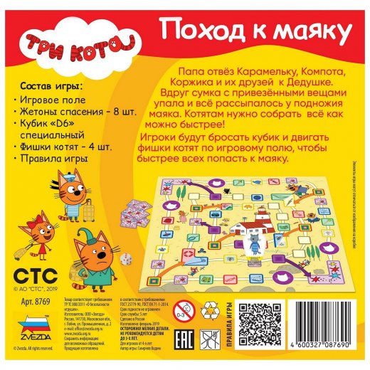 Путешествуя по игровому полю, участники игры потренируют зрительную память и научат счёту самых маленьких игроков. Улыбка и хорошее настроение гарантировано не покинут лица участников такой забавной игры.
