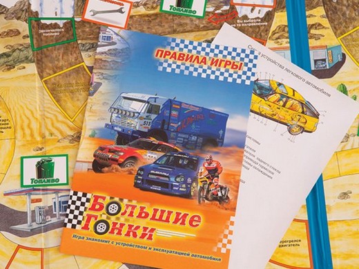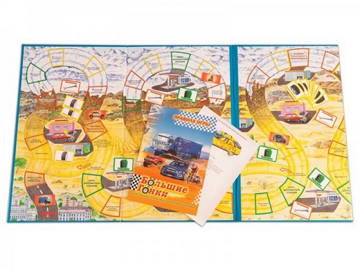 Настольная игра «Большие гонки» это замечательная игра-ходилка, фишками которой выступают различные транспортные средства. Каждый игрок мчится со старта наперегонки в заветному финишу! Отличительная особенность данной игры от остальных ходилок в том, что здесь посредством ответов на вопросы карточек игры ребятишки могут с удовольствием узнавать об особенностях различных автомобилей и их устройстве.