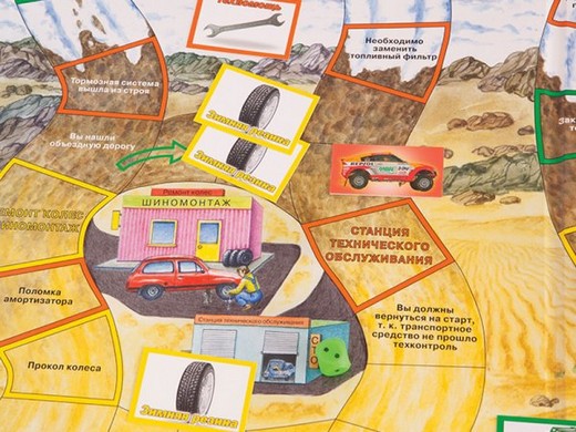 На определенных клетках поля игрокам предстоит отвечать на вопросы карточек. При ответах на вопросы дети смогут узнавать новое об автомобилях и их устройстве.