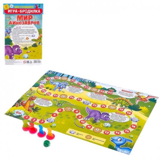 Купить настольную игру бродилку Мир динозавров в Новосибирске Вы можете в магазине развивающих и настольных игр "Игры Почемучек".