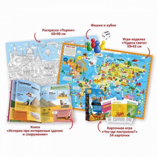 - Игра-ходилка "Чудеса света" (формат поля: 59X42 см, 4 фишки + кубик)