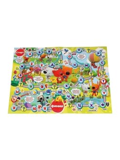 Комплект: красочное игровое поле, 36 игровых карточек, 4 фишки, кубик, правила игры.