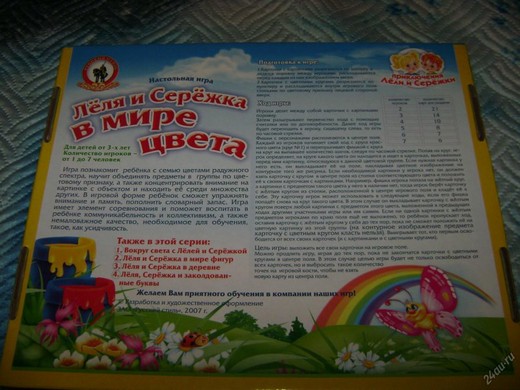 Правила настольной игры Лёля и Серёжа в мире цвета