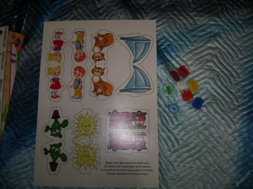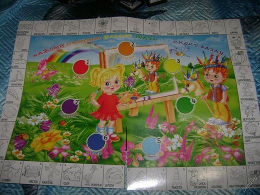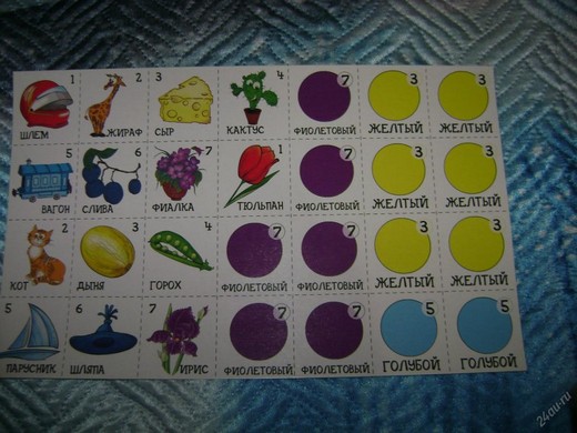 Например, фишка игрока попала на круг «овощи», а картинки с овощем у него в наличии нет, тогда игрок берет карточку с условным изображением «овощи» из стопки расположенной в центре игрового поля и кладет ее к себе.