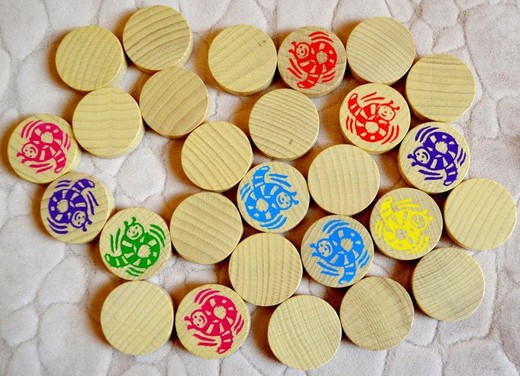 · Деревянные диски (27 шт.) с изображением червячков (9 цветов)