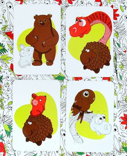 Цель каждого игрока - быстрее всех схватить нужный предмет. Ту самую фигурку, которая изображена на карточке. Да еще к тому же так, чтобы цвет животного на карточке совпадал с реальным цветом фигурки.